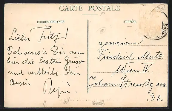 alte Ansichtskarte, gelaufen, Briefmarke entfernt, guter Zustand