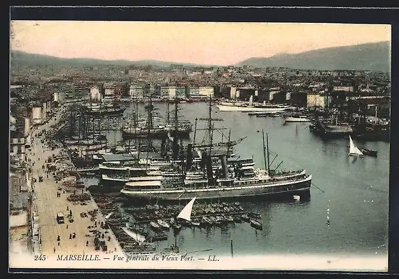 AK Marseille, Vue generale du vieux port, Dampfer im Hafen