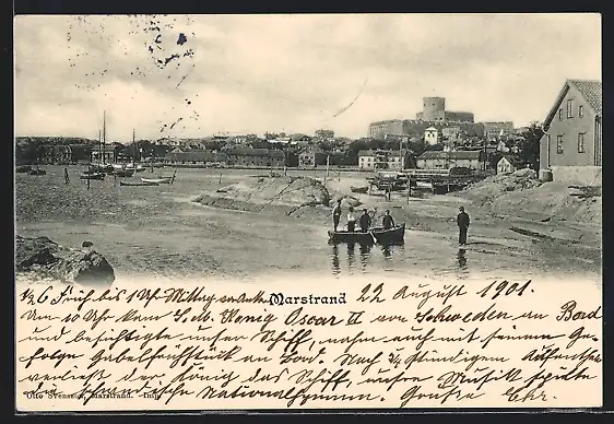 AK Marstrand, Küstenpanorama mit Blick auf die Festung