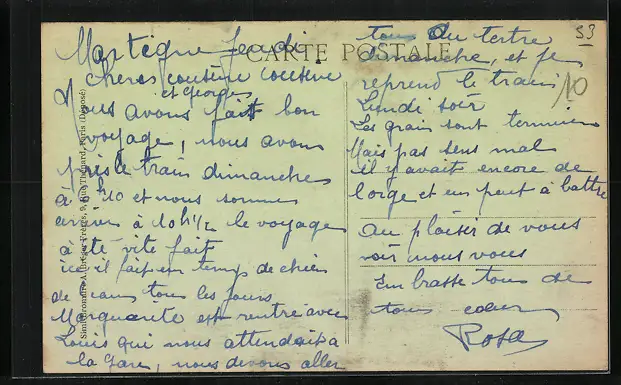 Personenbezogene Daten auf der Rückseite der Karte wurden durch blauen Textmarker unkenntlich gemacht. Die blauen Stellen sind auf die Vorderseite durchgeweicht und wirken sich negativ auf das Postkartenfoto aus
