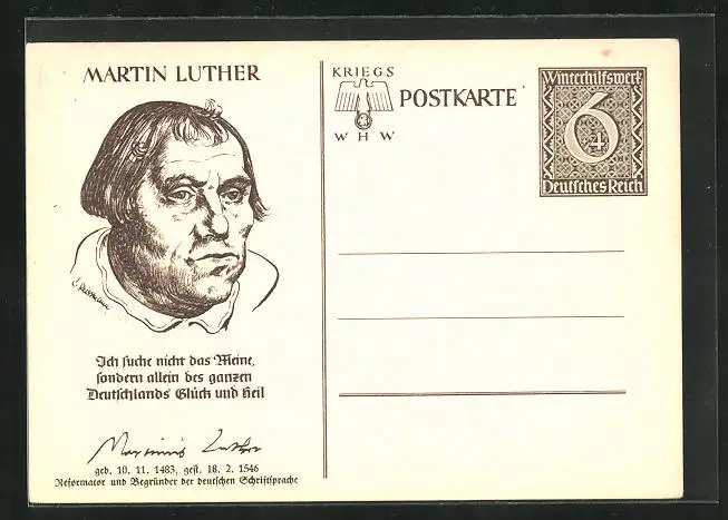 AK Martin Luther, Ganzsache WHW Winterhilfswerk