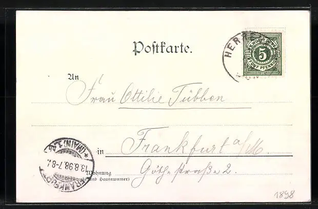 alte Ansichtskarte, gelaufen 1898, guter Zustand