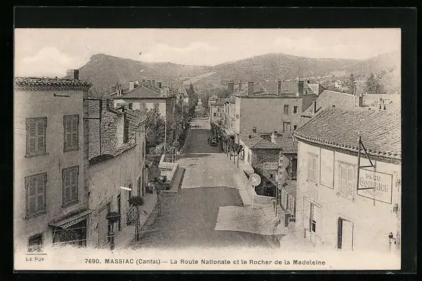 AK Massiac, La Route Nationale et le Rocher de la Madeleine