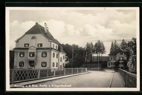 AK Massing /Rott, Strassenpartie am Kriegerdenkmal