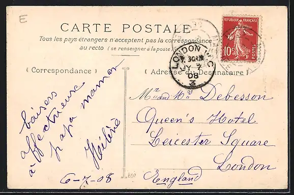 alte Ansichtskarte, gelaufen 1908, Stempelspur, guter Zustand