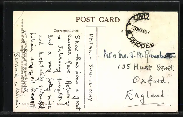 gelaufen 1945, Briefmarke entfernt, Eckknick oben re., guter Zustand
