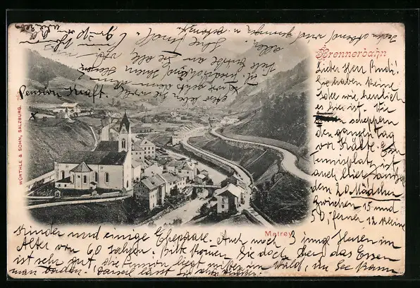 AK Matrei /Brennerbahn, Uferpartie mit Kirche
