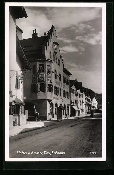 AK Matrei a. Brenner, Strassenpartie mit Rathaus