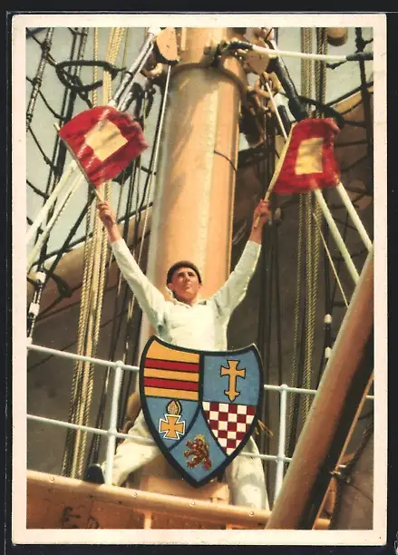 AK Matrose gibt Flaggensignale an Bord eines Schiffes