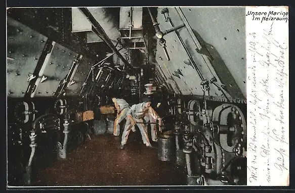 AK Matrosen im Heizraum eines Kriegsschiffes