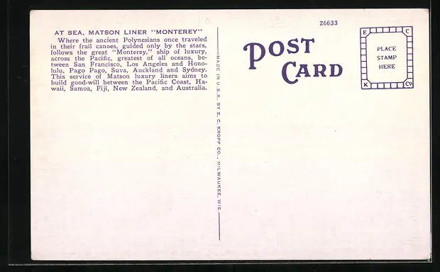 AK Matson Liner SS Monterey at Sea