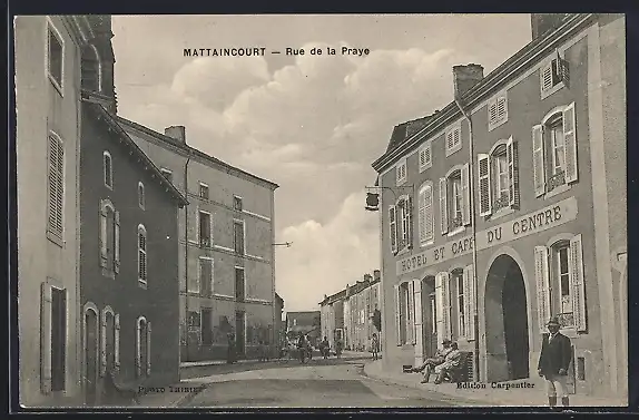 AK Mattaincourt, Rue de la Praye avec Hôtel et Café du Centre