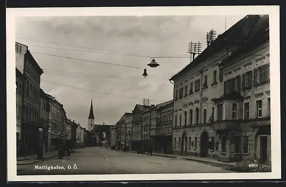AK Mattighofen /O.Ö., Blick zur Kirche mit kleiner Shell-Tankstelle