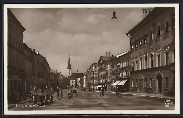 AK Mattighofen, Strassenansicht mit Passanten