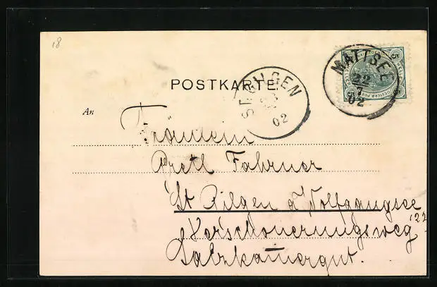 alte Ansichtskarte, gelaufen 1902, Stempelspur, guter Zustand