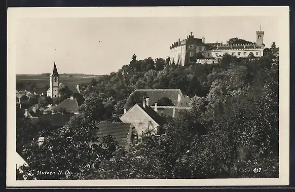 AK Matzen, Ortsansicht mit Kirche und Schloss