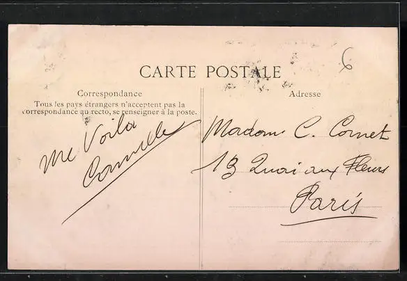 Personenbezogene Daten auf der Rückseite der Karte wurden durch blauen Textmarker unkenntlich gemacht. Die blauen Stellen sind auf die Vorderseite durchgeweicht und wirken sich negativ auf das Postkartenfoto aus