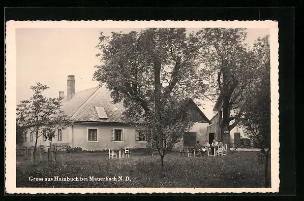 AK Mauerbach, Hainbuch, Familie am Tisch im Garten