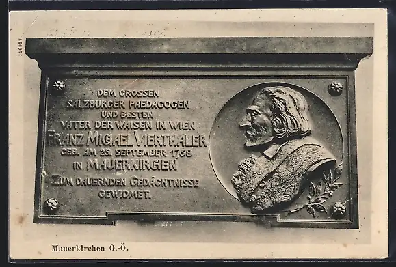 AK Mauerkirchen /O.-Ö., Gedächtnistafel für Franz Michael Vierthaler