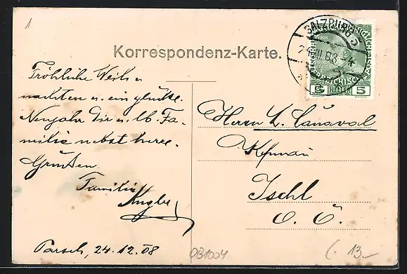 gelaufen 1908, Eckknick links oben und rechts unten, guter Zustand