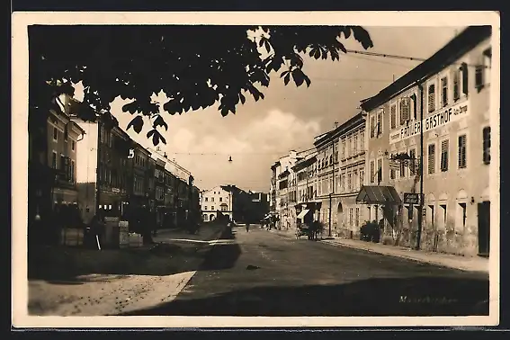 AK Mauerkirchen, Strassenpartie mit Gasthof und Zahn-Attelier
