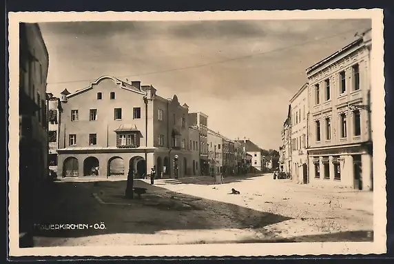 AK Mauerkirchen, Strassenpartie mit Sparkasse
