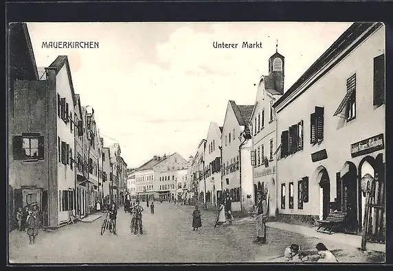 AK Mauerkirchen, Unterer Markt mit Geschäften