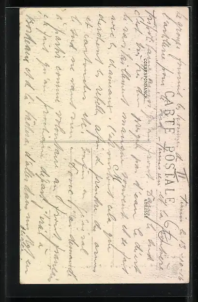 Personenbezogene Daten auf der Rückseite der Karte wurden durch blauen Textmarker unkenntlich gemacht. Die blauen Stellen sind auf die Vorderseite durchgeweicht und wirken sich negativ auf das Postkartenfoto aus