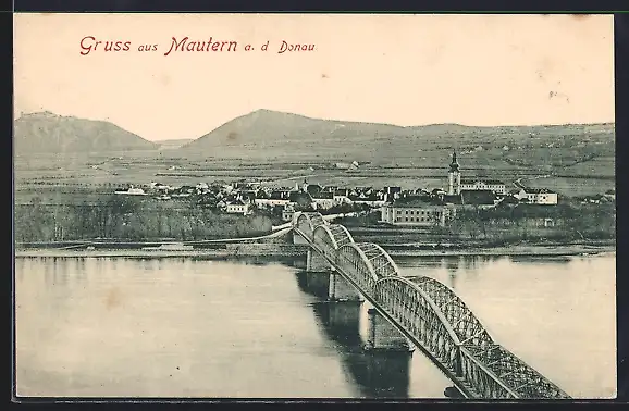 AK Mautern a. d. Donau, Ortsansicht mit Donaupartie