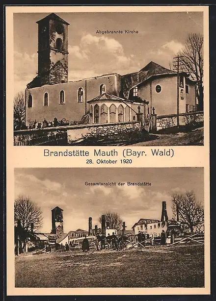 AK Mauth / Bayr. Wald, Gesamtansicht der Brandstätte 20.10.1920