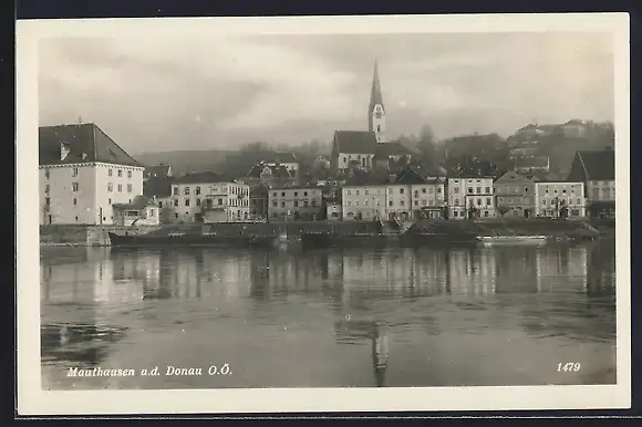 AK Mauthausen a. d. Donau, Uferpartie mit Kirche