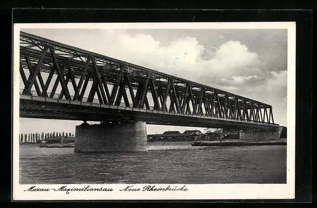 AK Maxau-Maximiliansau, Blick auf die neue Rheinbrücke
