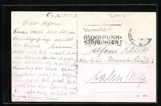 alte Ansichtskarte, gelaufen, Briefmarke entfernt, guter Zustand