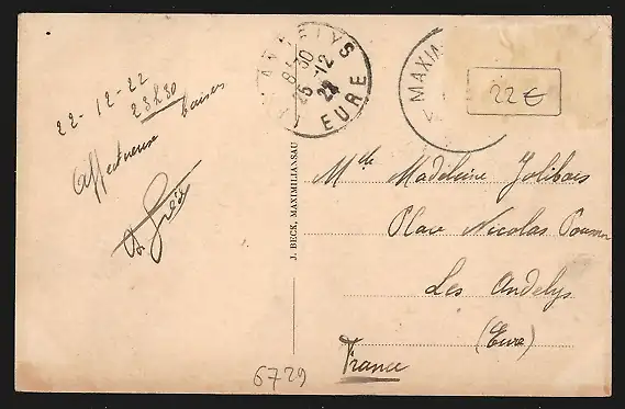 alte Ansichtskarte, gelaufen 1922, Briefmarke entfernt, Eckknicke li. oben u. re., Bugspur li. oben, guter Zustand