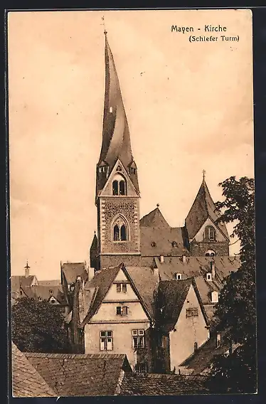AK Mayen, Blick auf die Kirche, Schiefer Turm