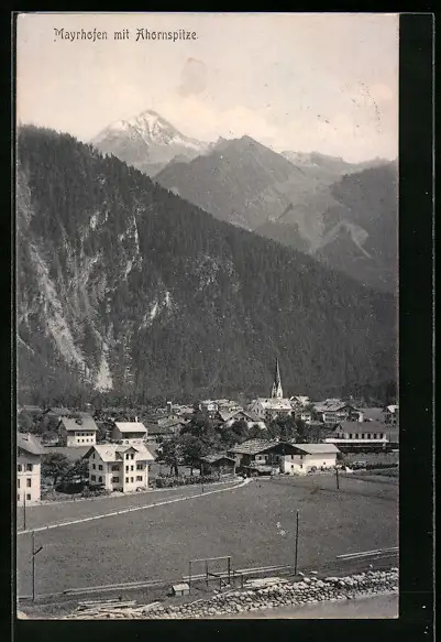 AK Mayrhofen, Ortsansicht mit Ahornspitze