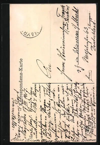 alte Ansichtskarte, gelaufen, Briefmarke entfernt, rückseitig Oberflächenschaden, guter Zustand