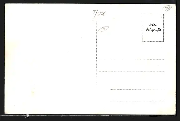 Personenbezogene Daten auf der Rückseite der Karte wurden durch blauen Textmarker unkenntlich gemacht. Die blauen Stellen sind auf die Vorderseite durchgeweicht und wirken sich negativ auf das Postkartenfoto aus