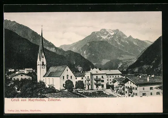 AK Mayrhofen /Zillertal, Ortspartie mit Kirche