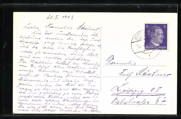 gelaufen 1943, Eckknick rechts oben, guter Zustand