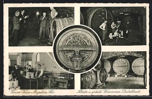 AK Mayschoss / Ahr., Mayschosser Winzer-Verein, Weinkeller m. Fässern & Packstation