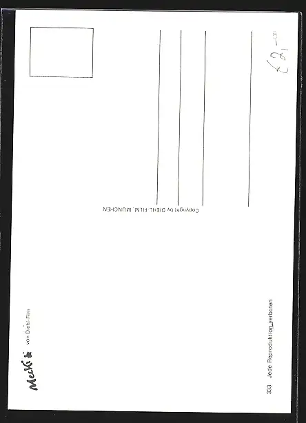 Personenbezogene Daten auf der Rückseite der Karte wurden durch blauen Textmarker unkenntlich gemacht. Die blauen Stellen sind auf die Vorderseite durchgeweicht und wirken sich negativ auf das Postkartenfoto aus