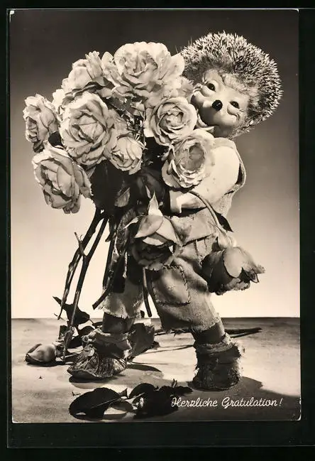 AK Mecki gratuliert mit einem Rosenstrauss, Herzliche Gratulation!