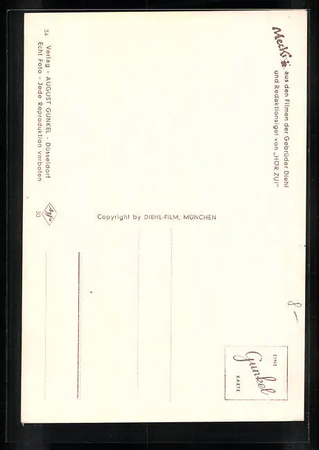 Personenbezogene Daten auf der Rückseite der Karte wurden durch blauen Textmarker unkenntlich gemacht. Die blauen Stellen sind auf die Vorderseite durchgeweicht und wirken sich negativ auf das Postkartenfoto aus