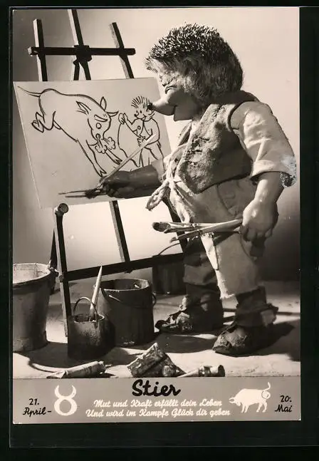 AK Mecki malt einen Stier, Sternzeichen Stier