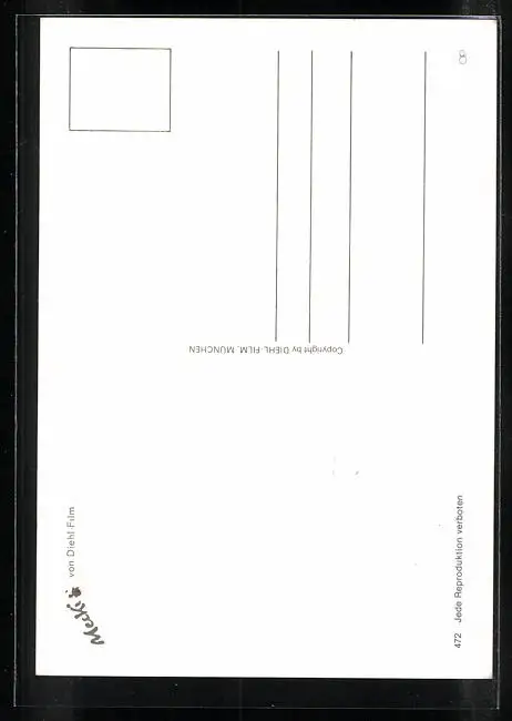Personenbezogene Daten auf der Rückseite der Karte wurden durch blauen Textmarker unkenntlich gemacht. Die blauen Stellen sind auf die Vorderseite durchgeweicht und wirken sich negativ auf das Postkartenfoto aus