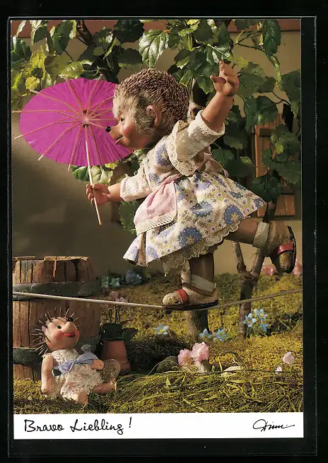 AK Meckis Tochter balanciert auf einem Seil im Garten