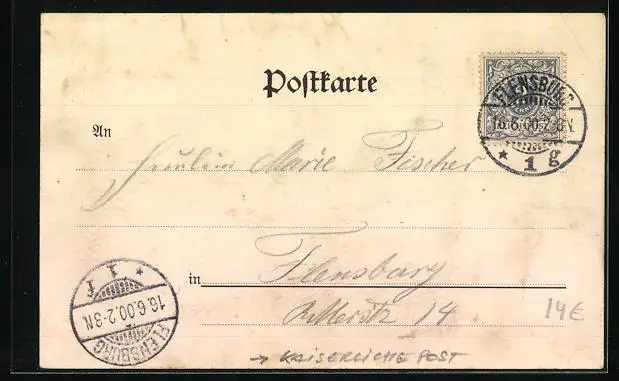 alte Ansichtskarte, gelaufen 1900, guter Zustand