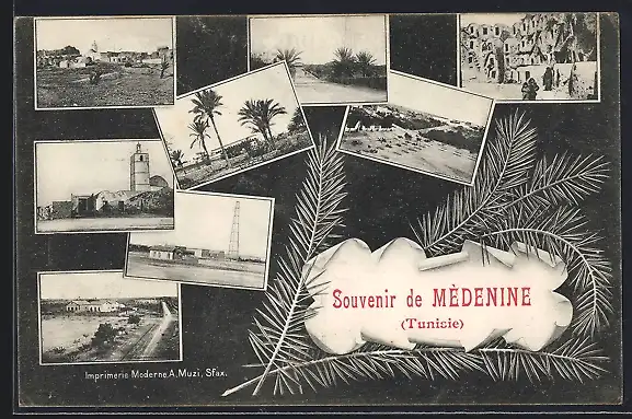 AK Mèdenine, Ansichten mit Palmenwedel