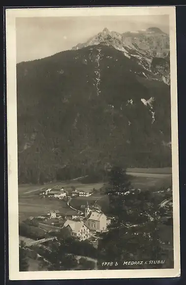 AK Medraz i. Stubai, Ortsansicht mit Bergpanorama